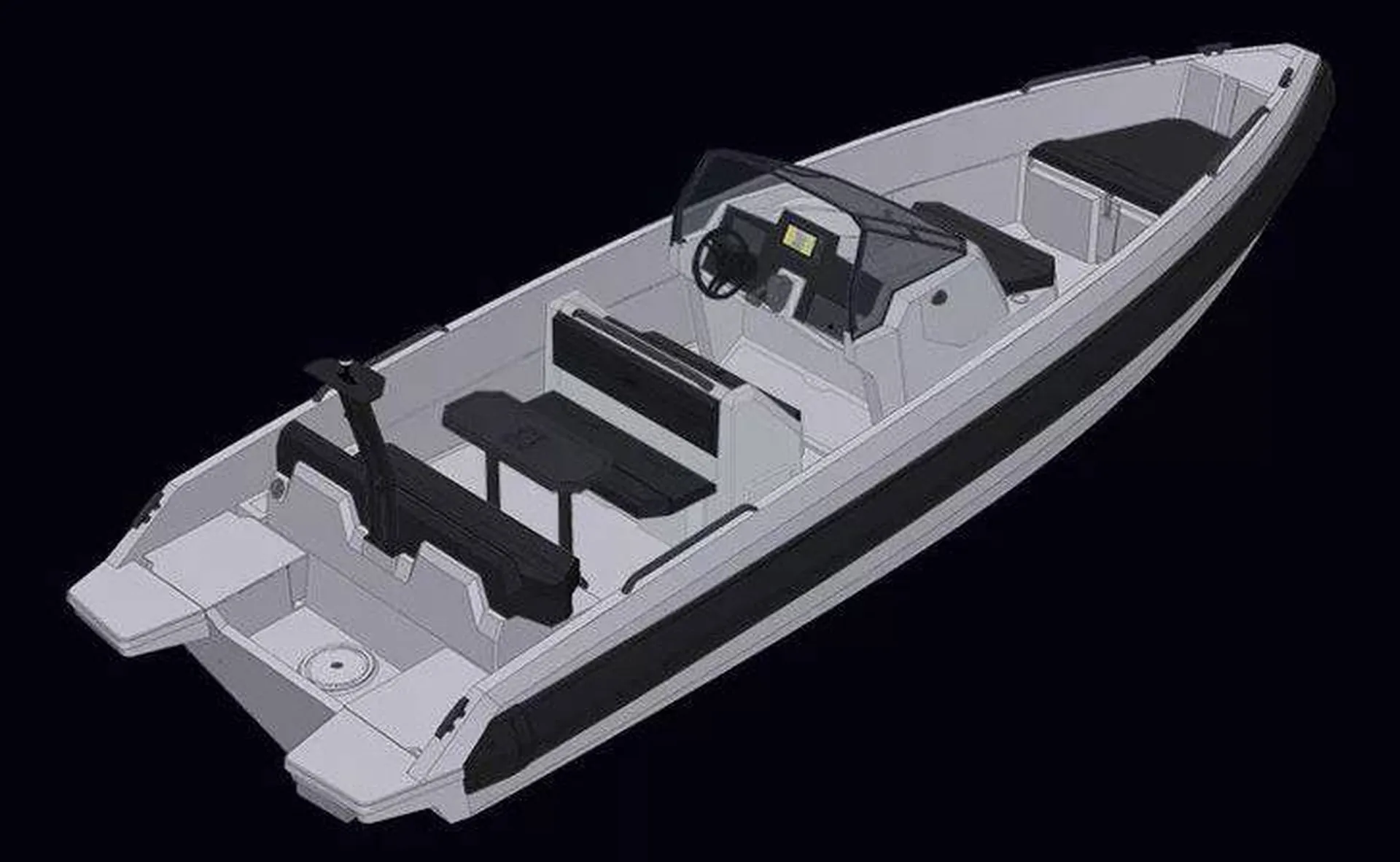 Options générales, équipements de pont et électroniques, la coque du bateau neuf Iron 707 est disponible en blanc, gris ou noir.