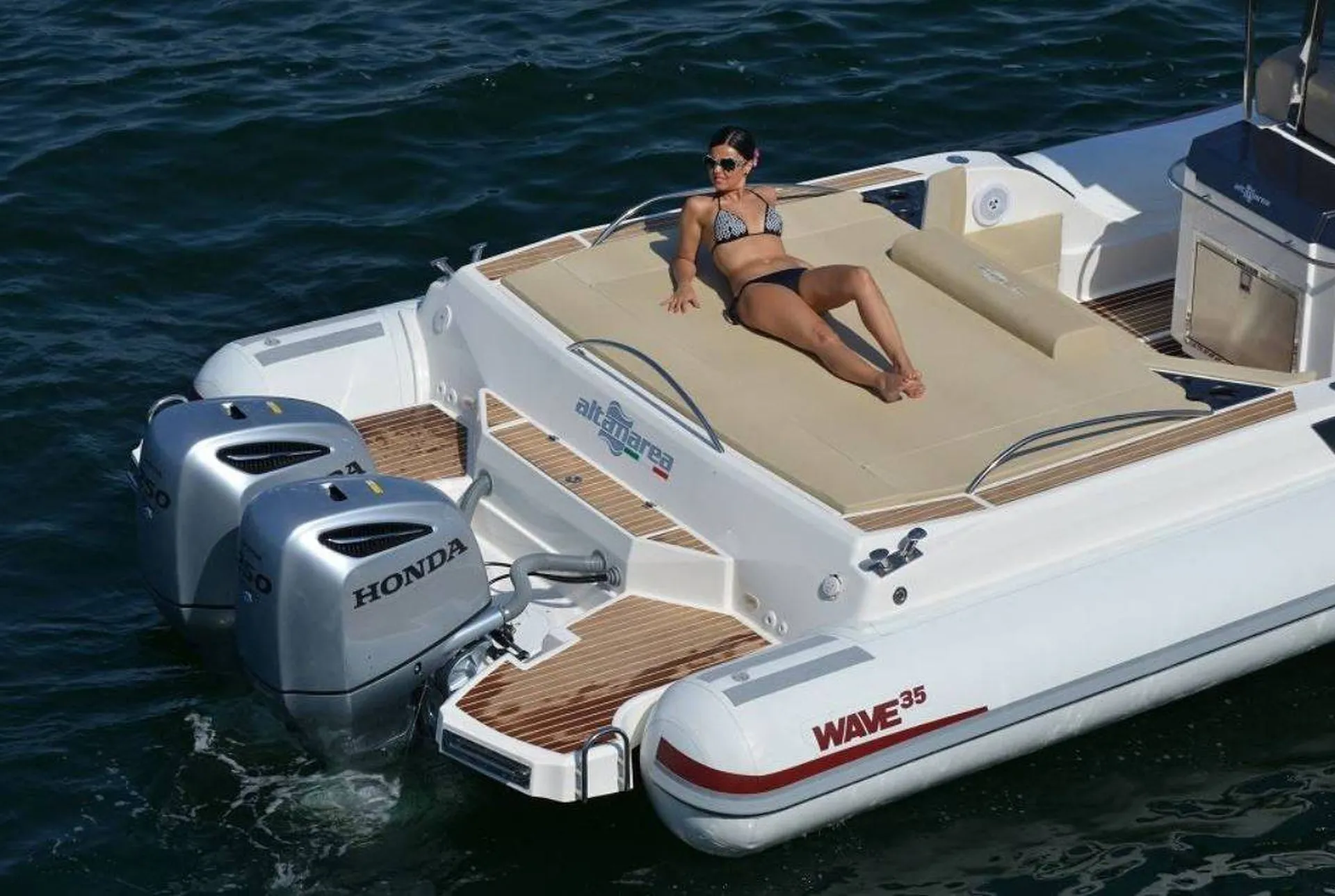 Dimensions généreuses (9,98 m x 3,60 m) pour accueillir jusqu'à 16 personnes et naviguer en toute stabilité spacieux et polyvalent, le semi-rigide Wave 35 d'Altamaréa est parfait pour toutes vos envies : sortie en famille ou entre amis, balade à la journée, escapade sportive et longue croisière.