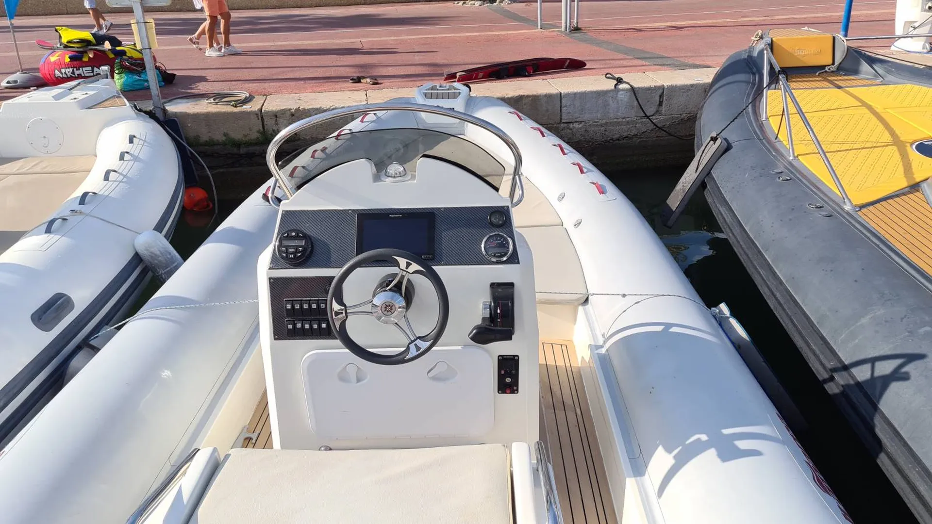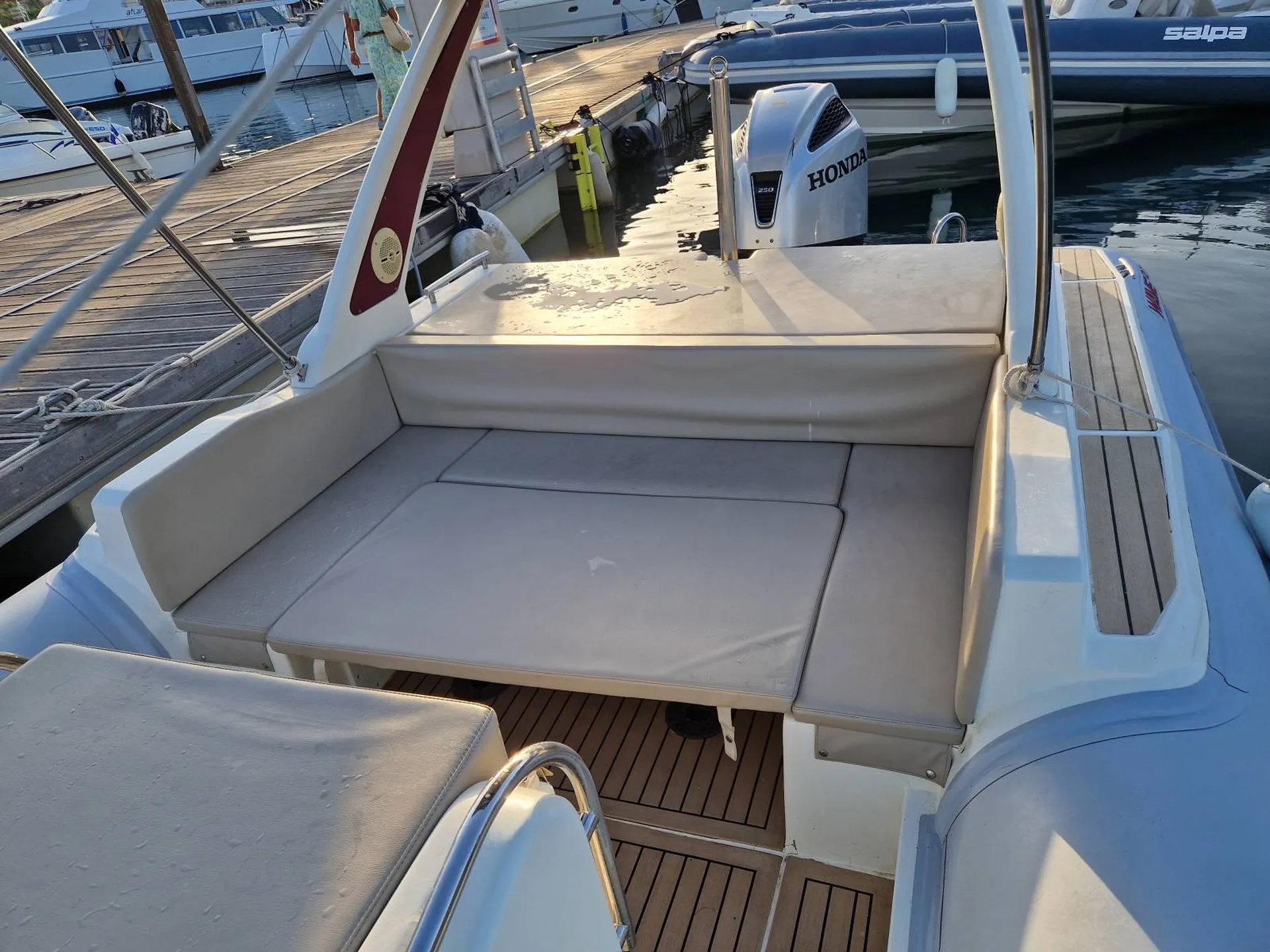 Bateau semi-rigide pour 14 personnes, présentant pas moins de 3 bains de soleil, un coin pique-nique, et de grands espaces de rangement, son confort extrême, fait aussi partie de ses atouts.