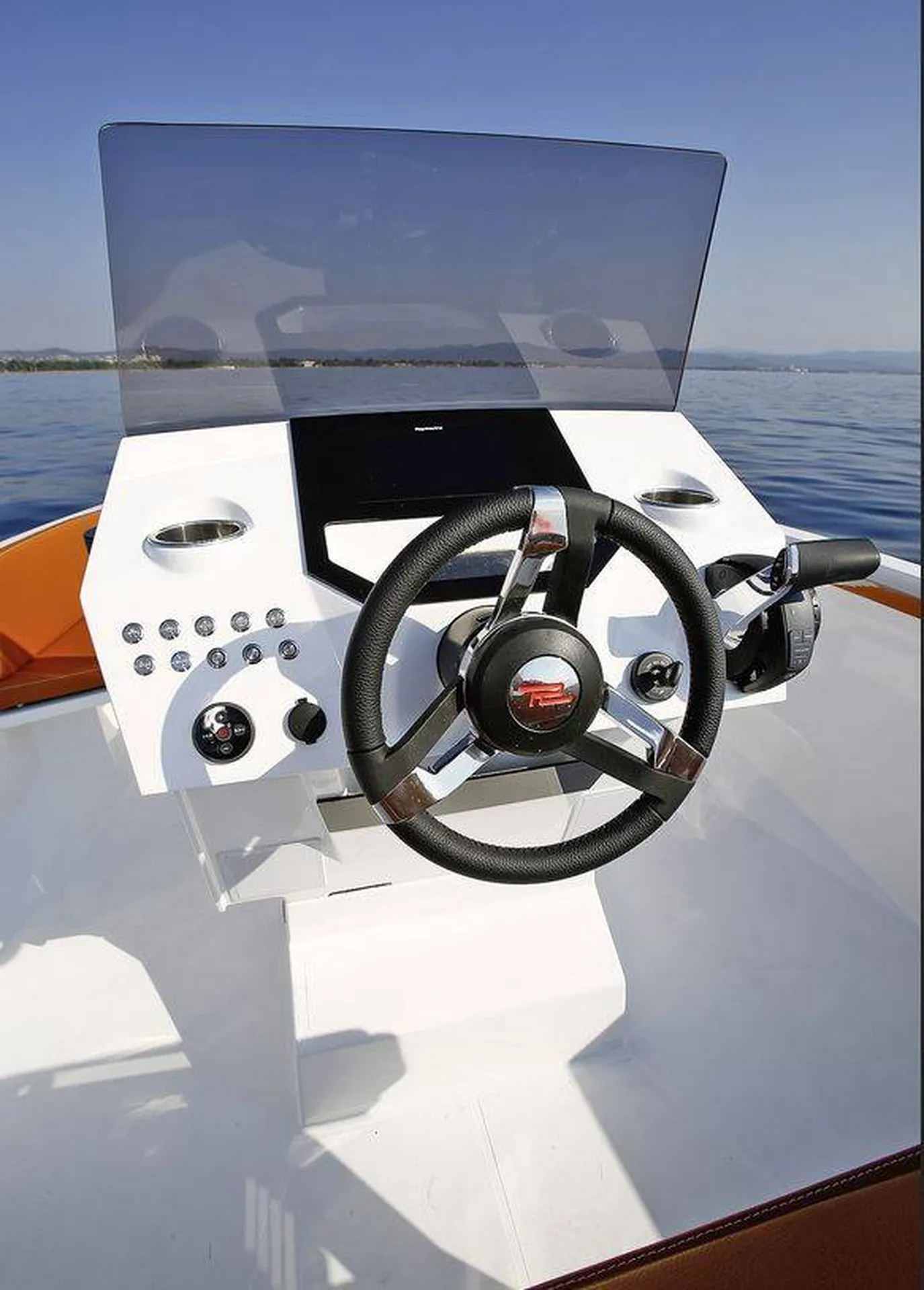 - Sellerie complète, guindeau avec mouillage et ancre, éclairage de courtoisie LED, feux de navigation, chargeur de téléphone, écran multifonction, avertisseur sonore, pompes de cale automatiques...