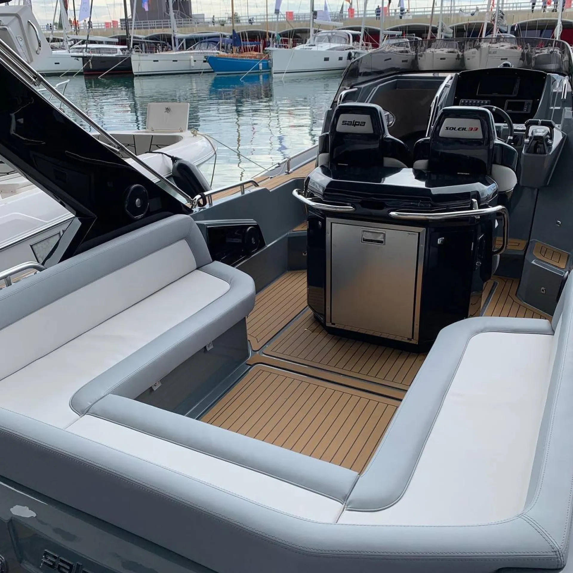Ce qui rend Salpa Soleil 33 si spécial, c'est avant tout son design et la forme de son arc dur pour son ancre électrique, sa coque avant très étroite la conception de ses tubes plus haut à l'avant allant vers le bas à l'arrière. Bateau sportif, il atteint des vitesses jusqu'à 55 nœuds, ce qui est très rapide pour un bateau pneumatique familial habitable.