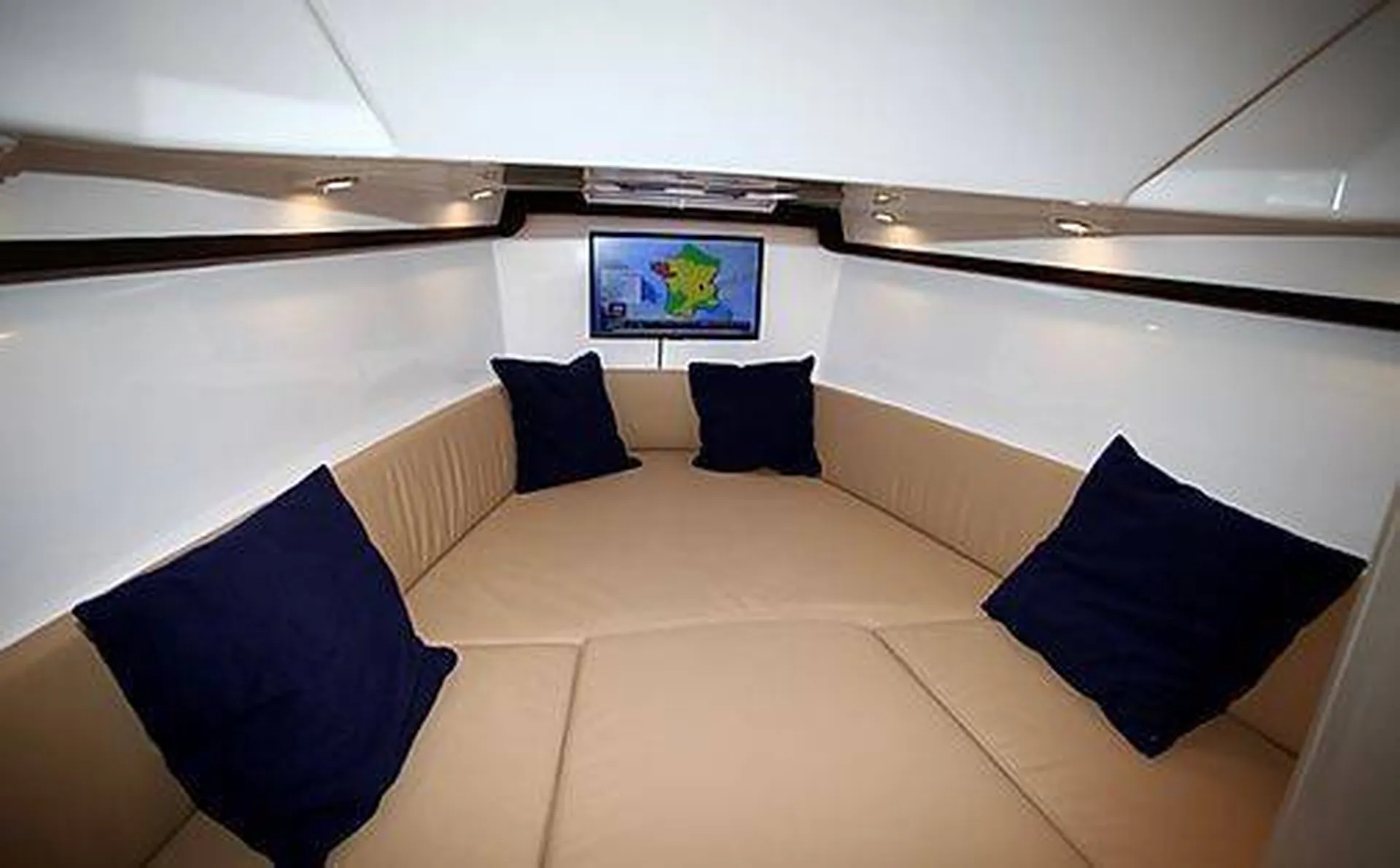 - Banquette arrière en forme de U avec grande table électrique pouvant s'abaisser pour se transformer en solarium grand bimini arceau