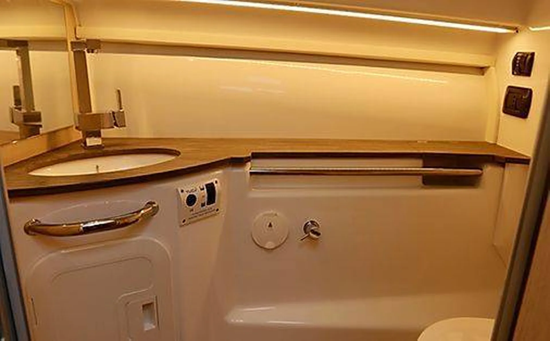 - Cockpit intérieur avec cabine deux couchages, douche, toilettes et rangements