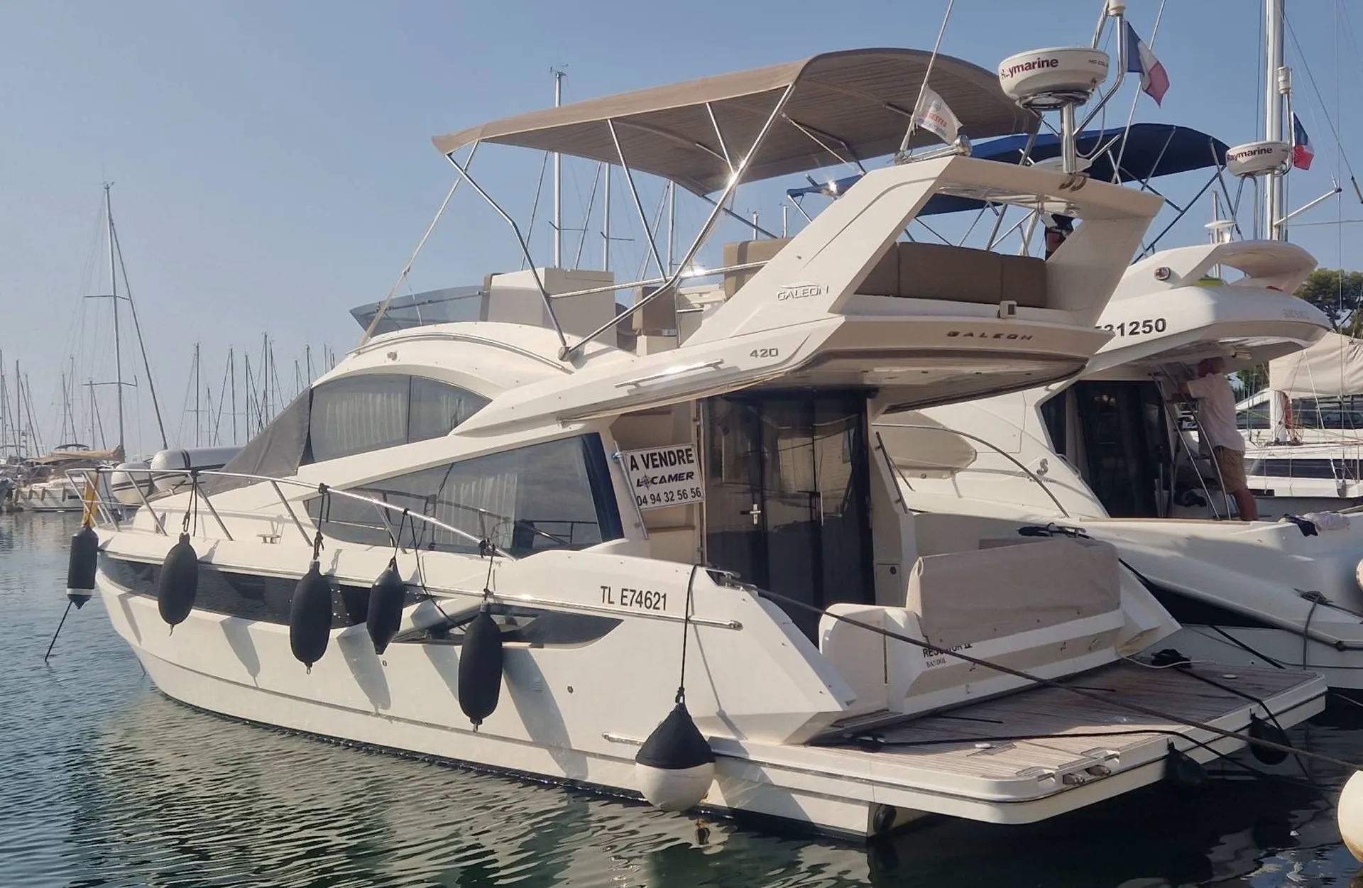 Spacieux, confortable, performant, idéal pour la croisière en famille et entre amis, venez découvrir Galeon 420 Fly à vendre d'occasion à Bandol. Par mail ou par téléphone, au 04 89 51 34 86, n"hésitez pas à nous contacter.