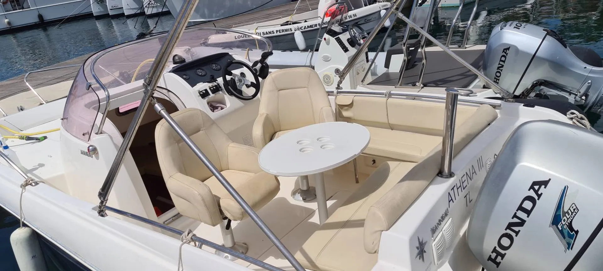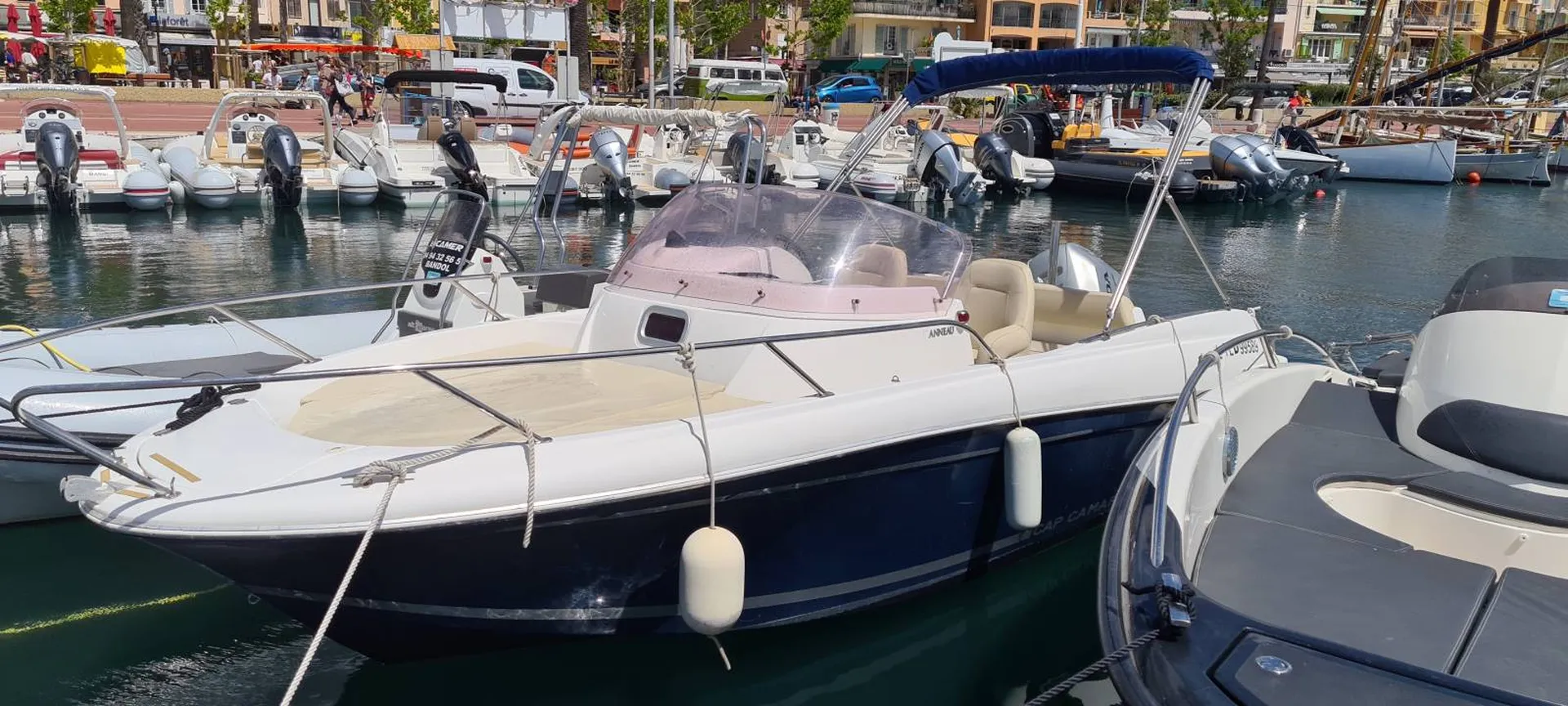 bateau Sun deck Cap Camarat, à louer sur le port de Bandol. - Moteur 150 CV Honda / Guindeau manuel